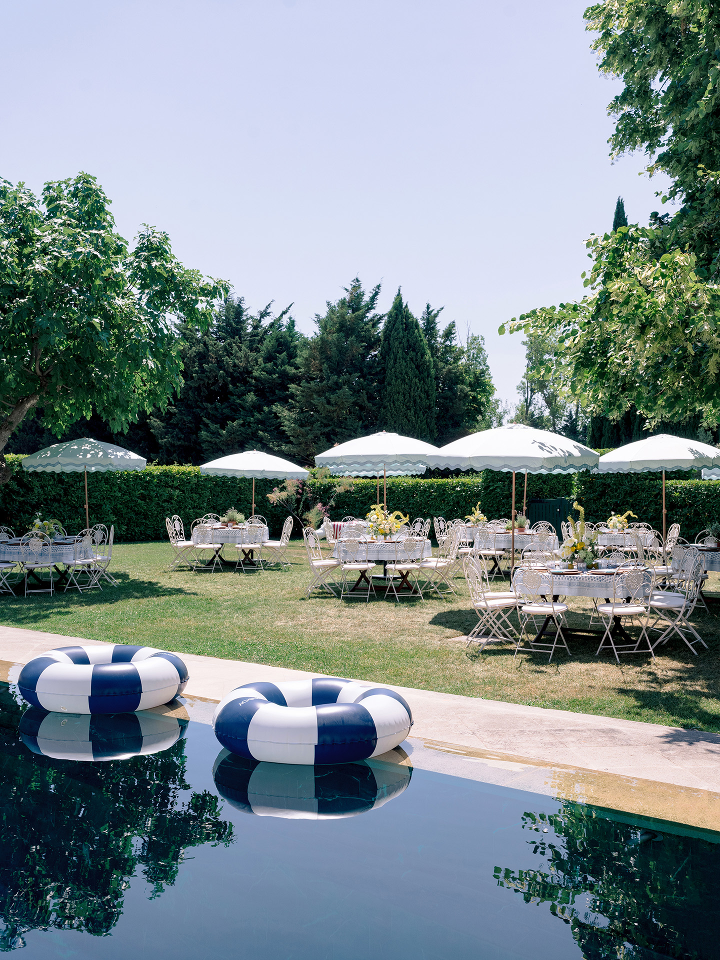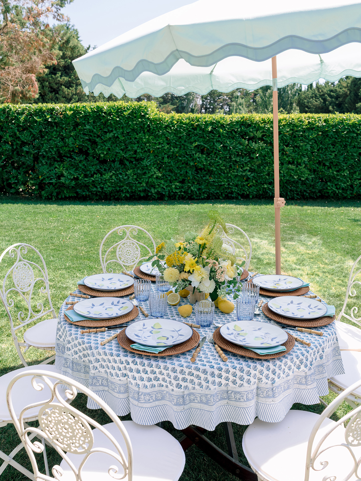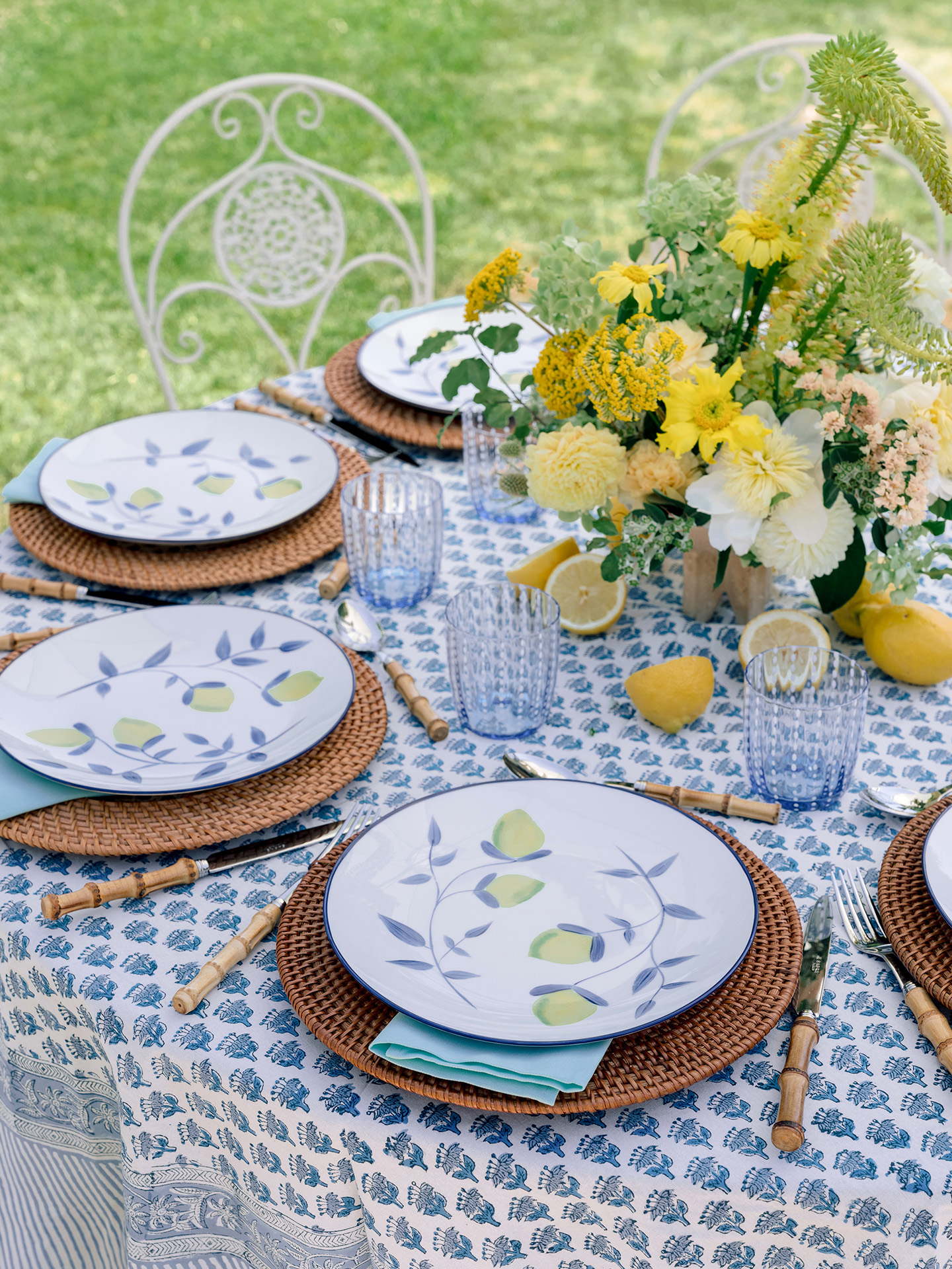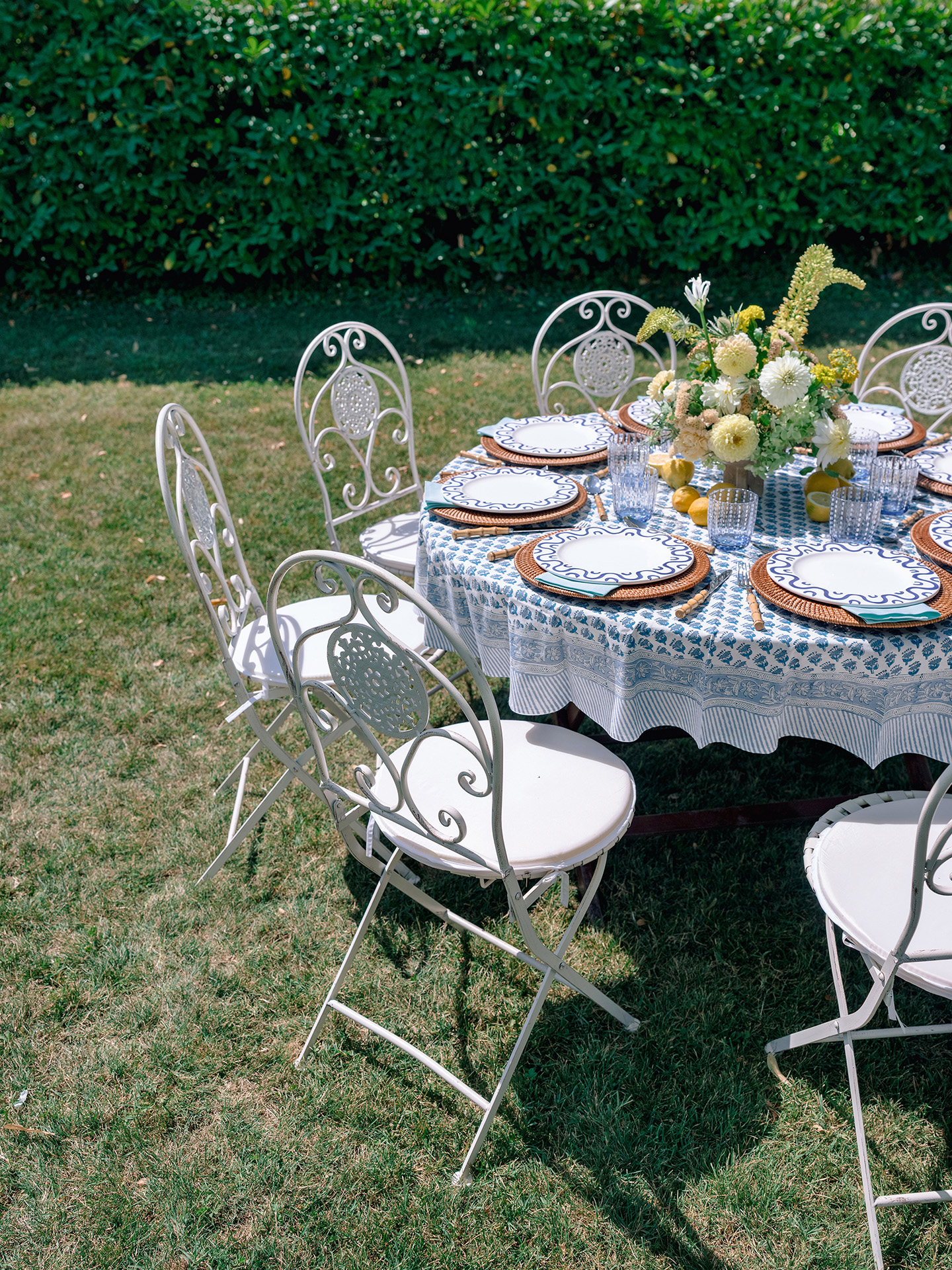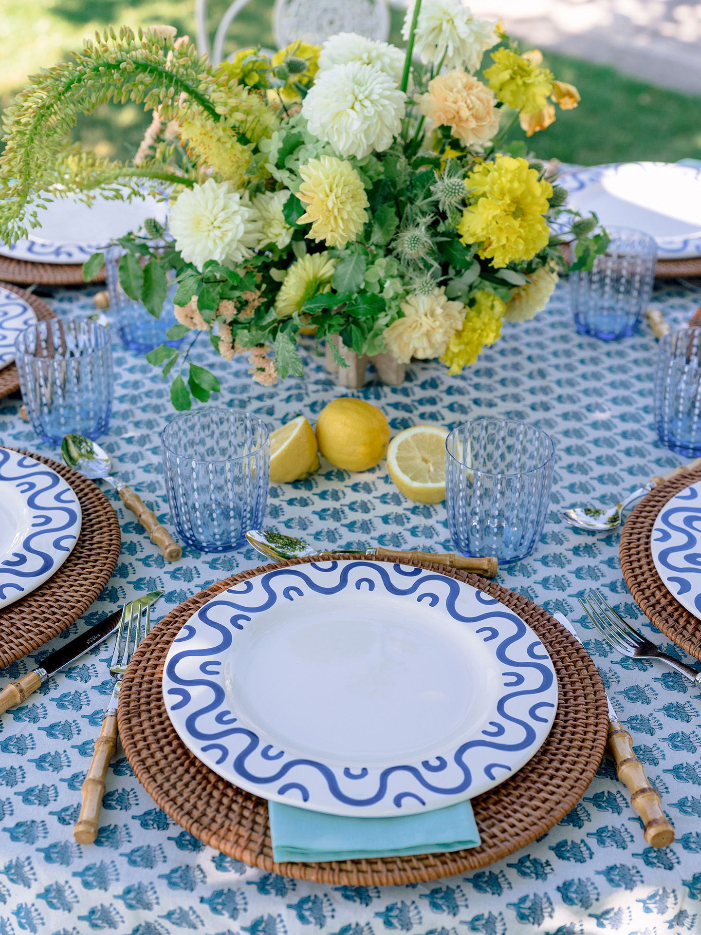 The farewell brunch of a four-day wedding weekend brought guests together poolside for a relaxed, sun-drenched celebration. Frozen Aperol spritzes, lemony touches throughout, pretty blue block print linens, and pops of yellow, green, and white florals created a vibrant and refreshing finale to a truly magical weekend.