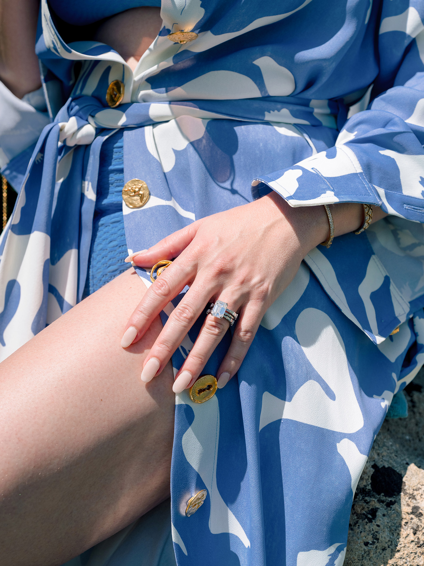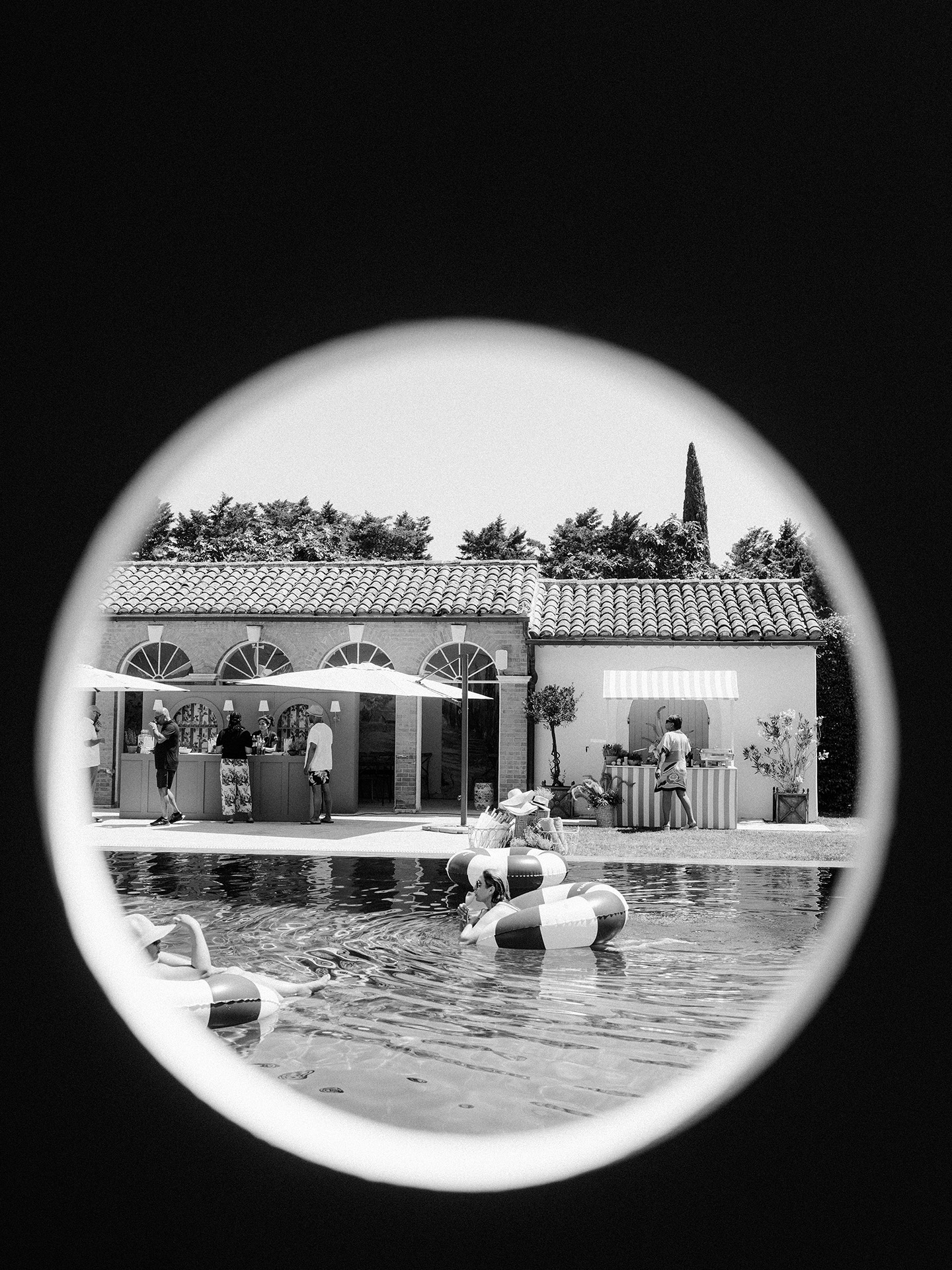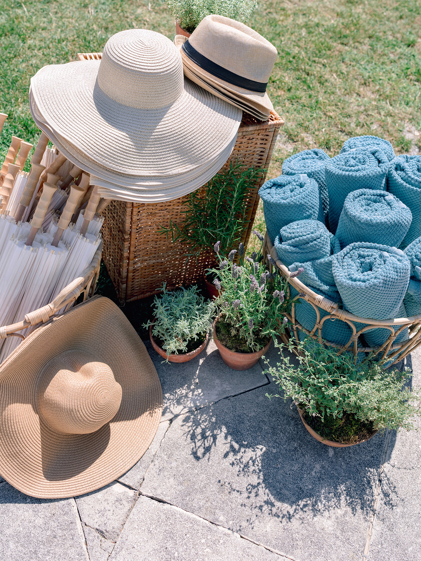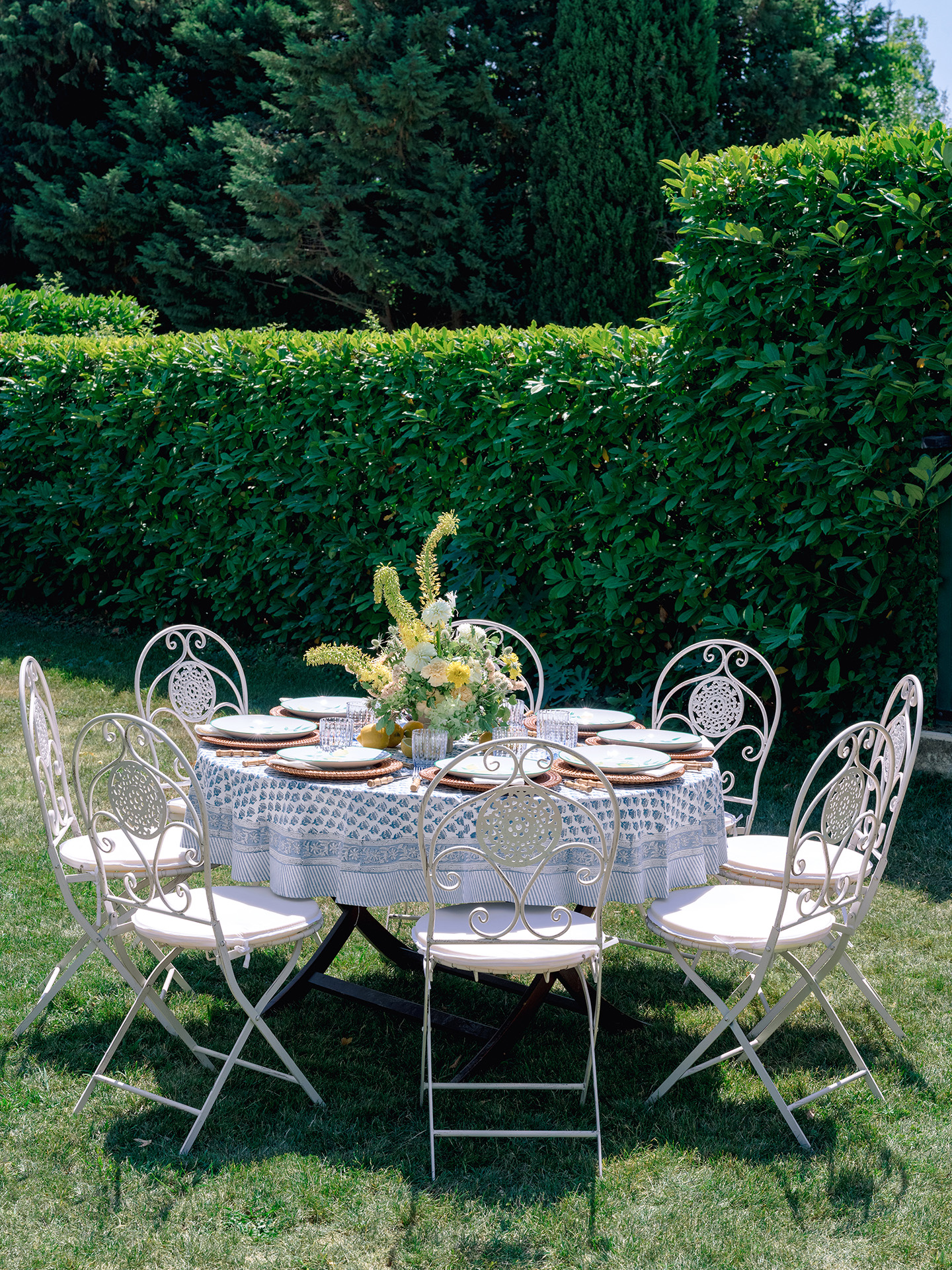 The farewell brunch of a four-day wedding weekend brought guests together poolside for a relaxed, sun-drenched celebration. Frozen Aperol spritzes, lemony touches throughout, pretty blue block print linens, and pops of yellow, green, and white florals created a vibrant and refreshing finale to a truly magical weekend.